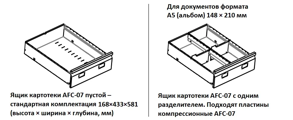 - Картотеки AFC-07 используются для хранения документов или карточек формата А5.