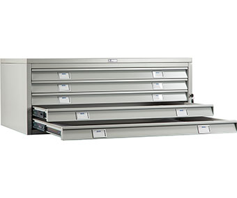 Предназначается для надежного хранения различных документов формата A1 (планы, карты, конструкторские чертежи), дополнительно в ящик можно установить разделители, которые используются для того чтобы было удобно хранить документы других форматов: A2, A3, A4 (опция);