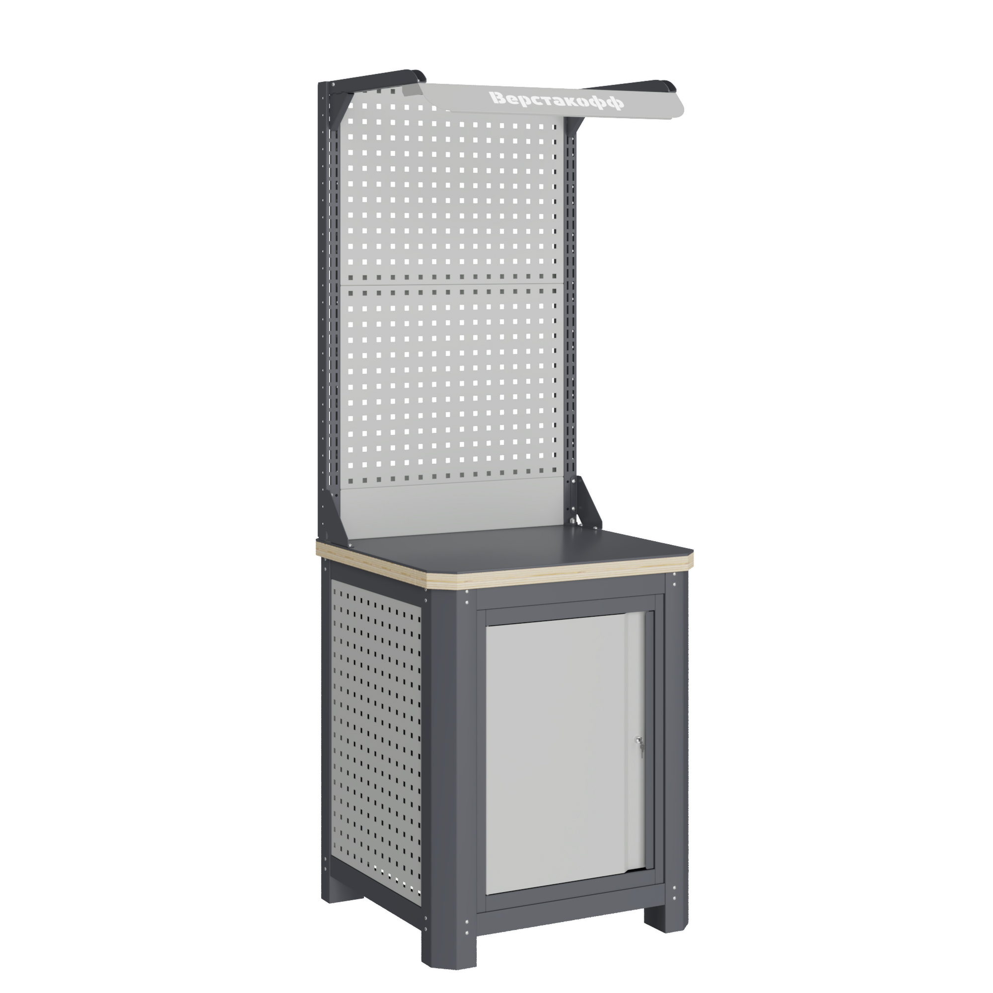 Модуль верстака имеет сварную конструкцию из профилированной стали с центральным ключевым замком.